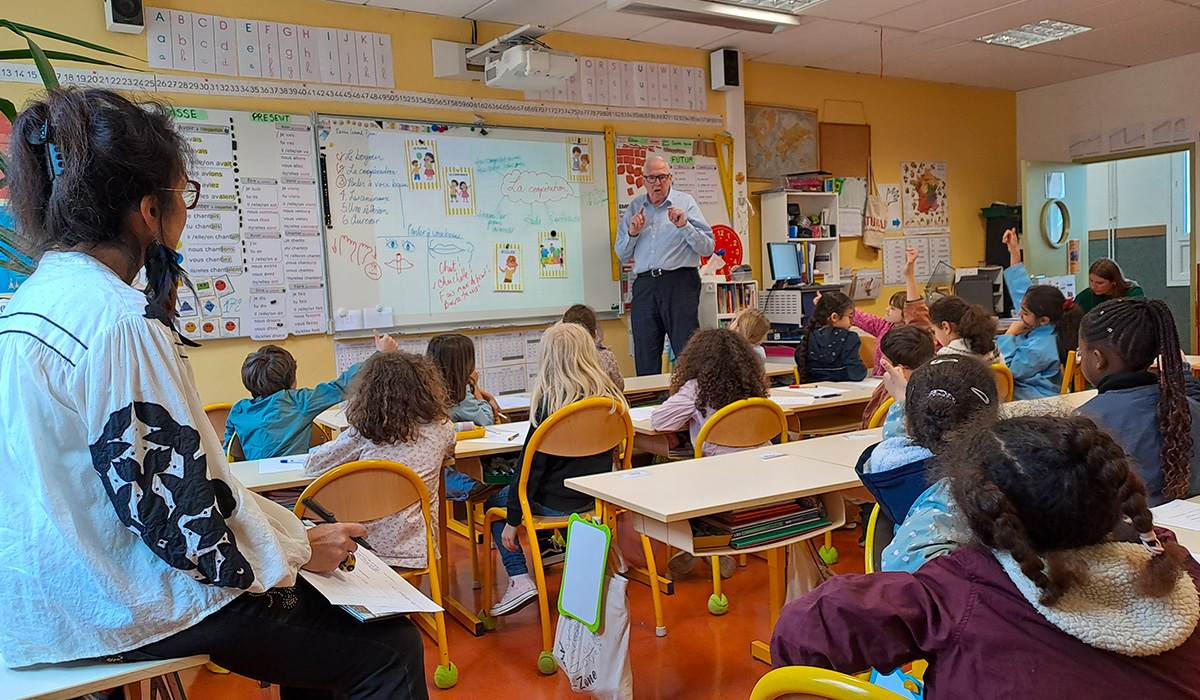 Jim Howden forme des élèves de CE1 et leurs enseignants à la pédagogie coopérative, avec cette double visée : apprendre à coopérer et coopérer pour apprendre, en se basant sur des valeurs qui leur sont propres.