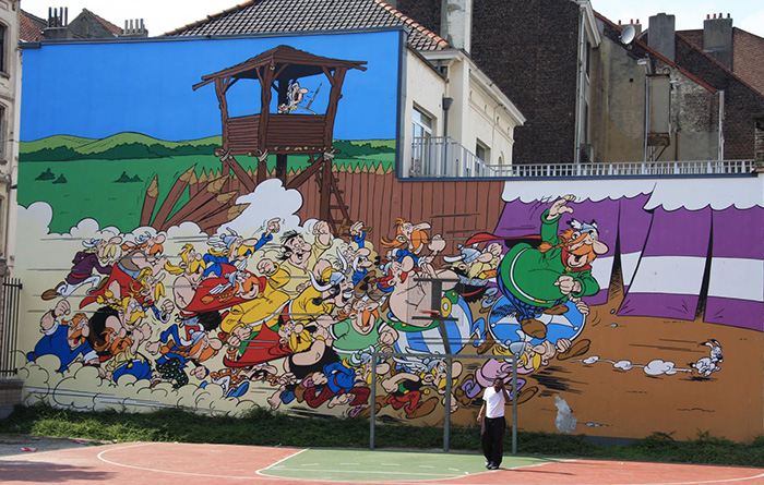 Découverte avec Régis Bergonier des fresques murales consacrées à la BD, lors d’une déambulation dans les rues de Bruxelles.